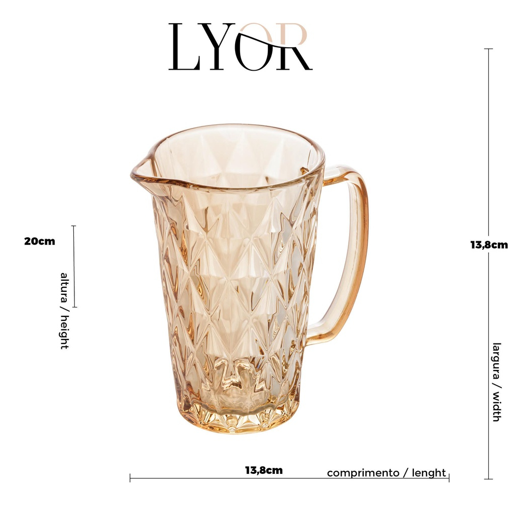 Jarra de Vidro Lyor Ambar Diamond para Agua Suco Vinho 1 L